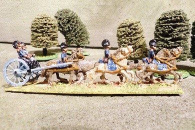 contains 1 limber model, 3 pairs of horses ( 6 models in total), and 3 out riders