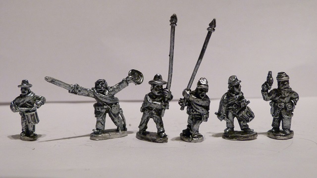 contains 2 officers, 2 drummers and 2 standard bearers